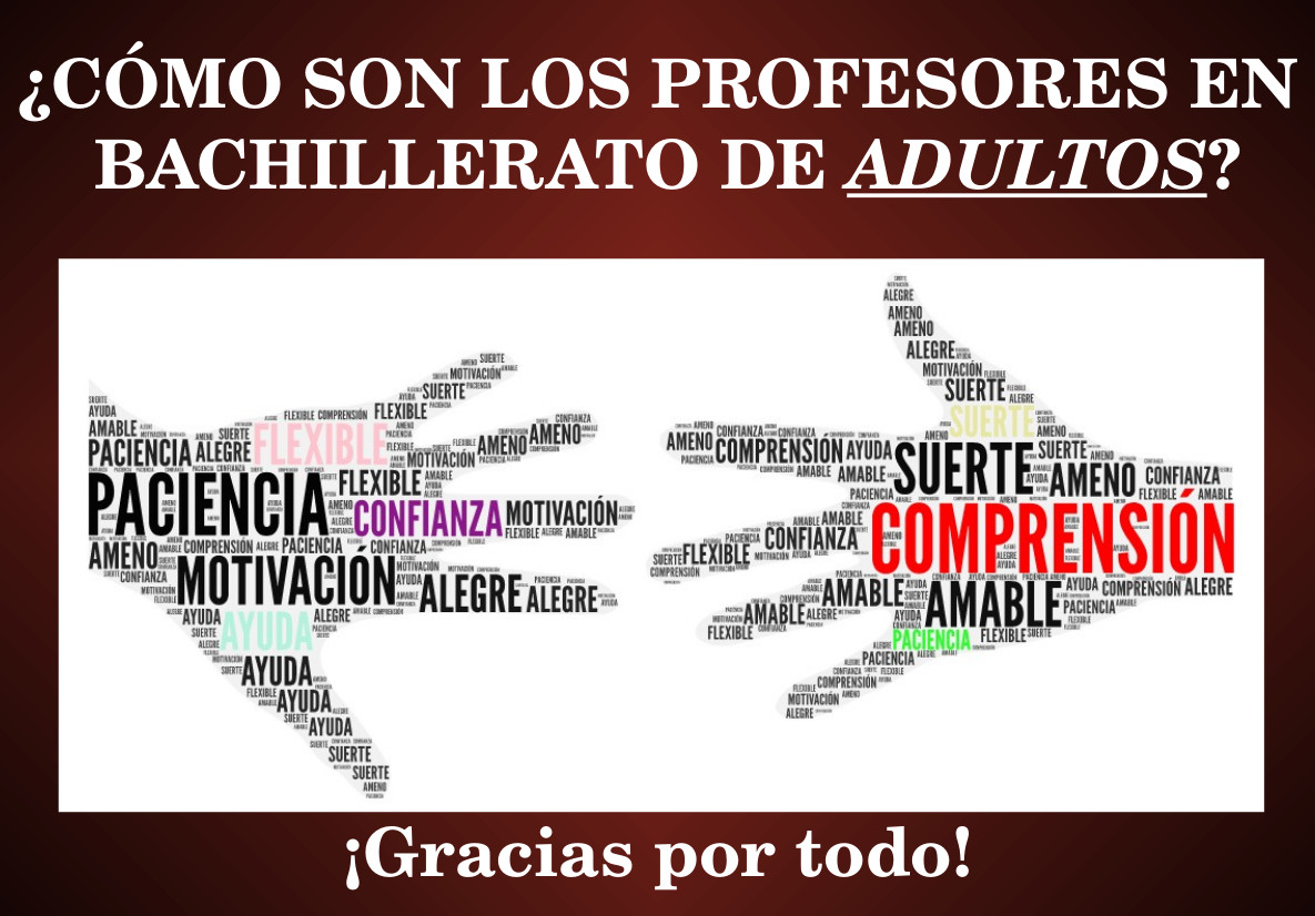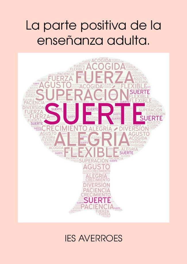 Los alumnos y alumnas de 2º de bachillerato de Adultos, están trabajando con herramientas como WordArt y AdobeSpark, que sirven para recoger información y mostrarla. Empezaron por hacer una lluvia de ideas, y aplicando lo aprendido, diseñaron estas imágenes, el tema fue "¿Qué os encontráis cuando llegáis a la enseñanza de adultos en el IES Averroes?" y esta fue su respuesta. Gracias en nombre de mis compañeros y compañeras, y por supuesto en mi nombre. Es muy gratificante compartir con vosotros esta etapa.