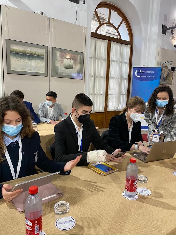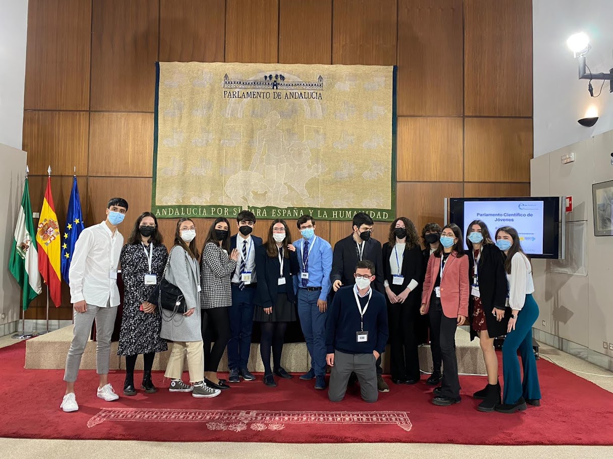 Un año más nuestro alumnado acude a la cita representando a la ciudad de Córdoba en este importante evento, donde jóvenes de cada una de las provincias andaluzas se reúnen y debaten sobre ciencia. En esta ocasión los temas a debatir eran contaminación atmosférica, alimentación y cambio climático, comunicación y energías, todos ellos relacionados con el cambio climático y con los objetivos de desarrollo sostenible. Cada uno de nuestros alumnos ha trabajado con su comisión correspondiente, proponiendo soluciones para frenar el cambio climático y la desinformación que sobre él hay (fake news, bulos en redes sociales, etc.), recibiendo la visita de un experto en la materia y concluyendo en sesión parlamentaria el 17 de marzo en el Parlamento andaluz. Allí se presentaron mociones, enmiendas y conclusiones a cada uno de los temas. Fuimos recibidos por la presidenta del Parlamento, Dña. Marta Bosquet, que resaltó la importancia de este tipo de encuentros. También recibimos las visitas del presidente de la Sociedad Andaluza para la Divulgación de la Ciencia, el presidente de Innovación Educativa, y la Secretaria General de Educación, todos ellos alabaron la labor de alumnado y profesorado implicados en el encuentro.