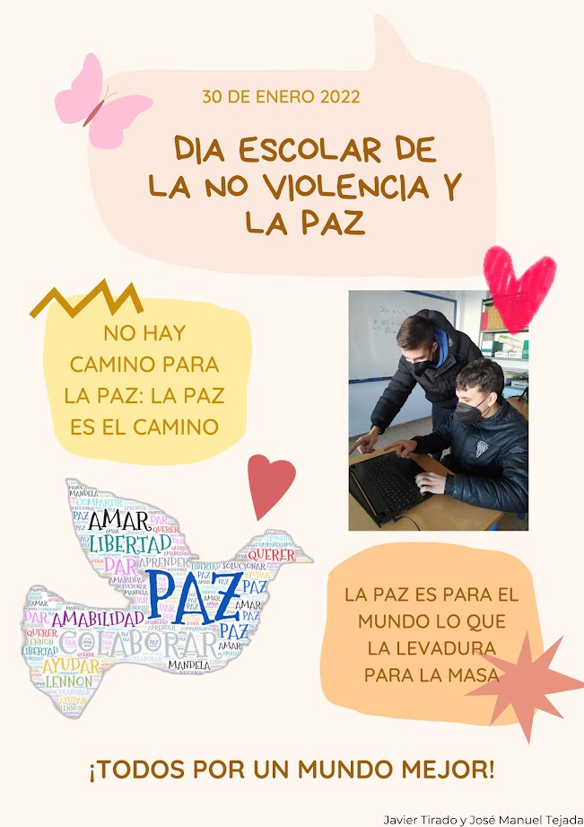 Los alumnos de 2º de bachillerato de TIC II, han realizado unos carteles muy bonitos y originales para celebrar el Día de la Paz, ¡enhorabuena chicos!, como siempre, un gran trabajo.